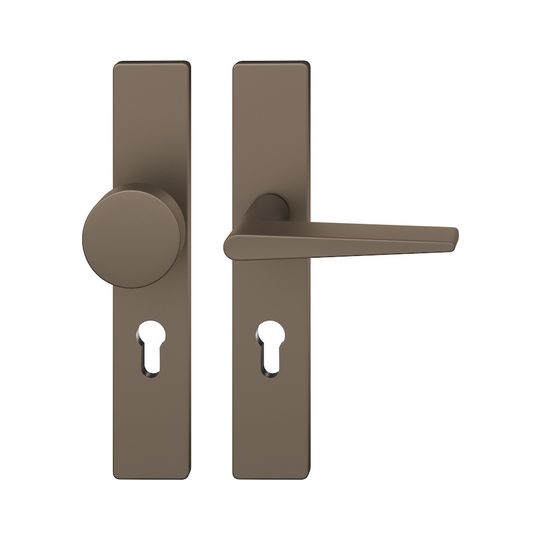 FSB Wechselgarnitur 12 1005; Material: Aluminium; Befestigungsart: verdeckt verschraubt; Befestigungstechnik: mit Stütznocken; Vierkant: 8 mm; Befestigungssystem: Stiftverbindung; Abdeckung: Langschild; Lagerung: ASL®,festdrehbar; Form: eckig; Benutzerklasse: Klasse 4; Einsatzbereich: Objekttür; Basis: Wechselgarnitur; Lochung: Profilzylinder gelocht; Entfernung: 72 mm; Türstärke min.: 39 mm; Türstärke max.: 58 mm; Knopfhöhe: 44 mm; Knopfform: rund; DIN-Richtung: DIN Links-Rechts; Norm: DIN EN 1906; Breite: 45 mm; Länge: 245 mm; Oberfläche: gestrahlt,eloxiert; Farbton: mittelbronzefarbig; Türart: Außentüren; Drückerbefestigung: Wechselstift mit Rolle; Anschlagrichtung: Drücker rechts/links verwendbar; Knopfdurchmesser: 50 mm; Türwerkstoff: Holz,Stahl; Lieferung: mit Befestigungsmaterial; Betätigungswinkel max.: 45 °; Drückerhöhe: 59 mm; Drückerlänge: 128 mm; Schildstärke außen: 7 mm; Schildstärke innen: 7 mm; Material Unterkonstruktion: Kunststoff-Edelstahl verstärkt; Drückerform: L-Form