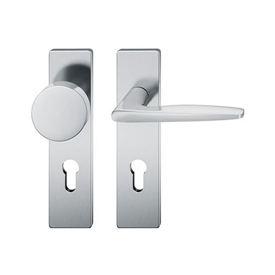 FSB Wechselgarnitur 12 1058; Material: Aluminium; Befestigungsart: verdeckt verschraubt; Befestigungstechnik: mit Stütznocken; Vierkant: 8 mm; Befestigungssystem: Stiftverbindung; Abdeckung: Kurzschild; Lagerung: ASL®,festdrehbar; Form: eckig; Benutzerklasse: Klasse 4; Einsatzbereich: Objekttür; Basis: Wechselgarnitur; Lochung: Profilzylinder gelocht; Entfernung: 72 mm; Türstärke min.: 39 mm; Türstärke max.: 58 mm; DIN-Richtung: DIN Links-Rechts; Anschlagrichtung: Drücker rechts/links verwendbar; Breite: 45 mm; Länge: 185 mm; Oberfläche: eloxiert; Farbton: naturfarbig; Norm: DIN EN 1906; Türart: Außentüren; Drückerbefestigung: Wechselstift mit Rolle; Knopfdurchmesser: 50 mm; Knopfhöhe: 44 mm; Türwerkstoff: Holz,Stahl; Lieferung: mit Befestigungsmaterial; Betätigungswinkel max.: 45 °; Drückerhöhe: 58 mm; Drückerlänge: 129 mm; Design: Johannes Potente; Ausführung: mit Knopf 0829; Knopfform: rund; Schildstärke außen: 7 mm; Schildstärke innen: 7 mm; Material Unterkonstruktion: Kunststoff-Edelstahl verstärkt; Drückerform: L-Form