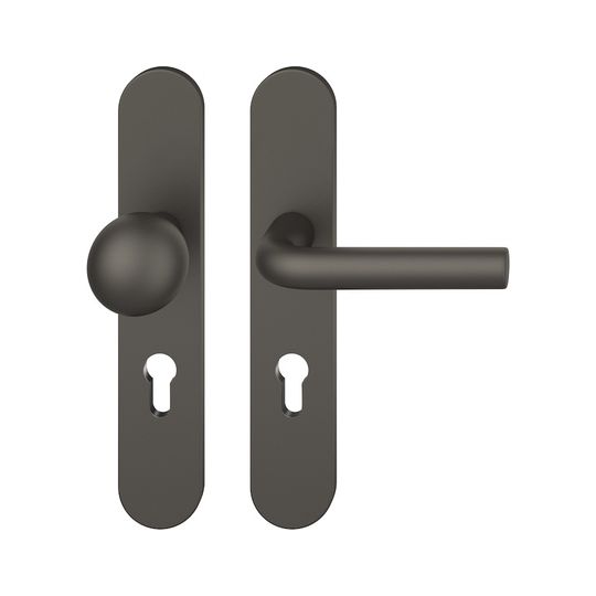 FSB Wechselgarnitur 12 1075; Material: Aluminium; Befestigungsart: verdeckt verschraubt; Befestigungstechnik: mit Stütznocken; Vierkant: 8 mm; Befestigungssystem: Stiftverbindung; Abdeckung: Langschild; Lagerung: ASL®,festdrehbar; Form: oval; Benutzerklasse: Klasse 4; Einsatzbereich: Objekttür; Basis: Wechselgarnitur; Lochung: Profilzylinder gelocht; Entfernung: 92 mm; Türstärke min.: 39 mm; Türstärke max.: 58 mm; Knopfhöhe: 70 mm; Knopfform: Kugelform; DIN-Richtung: DIN Links-Rechts; Norm: DIN EN 1906; Drückerdurchmesser: 20 mm; Breite: 45 mm; Länge: 245 mm; Oberfläche: gestrahlt,eloxiert; Farbton: dunkelbronzefarbig; Türart: Außentüren; Drückerbefestigung: Wechselstift mit Rolle; Anschlagrichtung: Drücker rechts/links verwendbar; Knopfdurchmesser: 50 mm; Türwerkstoff: Holz,Stahl; Lieferung: mit Befestigungsmaterial; Betätigungswinkel max.: 45 °; Drückerhöhe: 62 mm; Drückerlänge: 132 mm; Schildstärke außen: 7 mm; Schildstärke innen: 7 mm; Material Unterkonstruktion: Kunststoff-Edelstahl verstärkt; Drückerform: L-Form