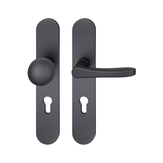 FSB Wechselgarnitur 12 1106; Material: Aluminium; Befestigungsart: verdeckt verschraubt; Befestigungstechnik: mit Stütznocken; Vierkant: 8 mm; Befestigungssystem: Stiftverbindung; Abdeckung: Langschild; Lagerung: ASL®,festdrehbar; Form: oval; Benutzerklasse: Klasse 4; Einsatzbereich: Objekttür; Basis: Wechselgarnitur; Lochung: Profilzylinder gelocht; Entfernung: 72 mm; Türstärke min.: 39 mm; Türstärke max.: 58 mm; Knopfhöhe: 70 mm; Knopfform: Kugelform; DIN-Richtung: DIN Links-Rechts; Norm: DIN EN 1906; Breite: 45 mm; Länge: 245 mm; Farbe: schwarz; Oberfläche: gestrahlt,eloxiert; Türart: Außentüren; Drückerbefestigung: Wechselstift mit Rolle; Anschlagrichtung: Drücker rechts/links verwendbar; Knopfdurchmesser: 50 mm; Türwerkstoff: Holz,Stahl; Lieferung: mit Befestigungsmaterial; Betätigungswinkel max.: 45 °; Drückerhöhe: 75 mm; Drückerlänge: 119 mm; Design: Christoph Mäckler; Schildstärke außen: 7 mm; Schildstärke innen: 7 mm; Material Unterkonstruktion: Kunststoff-Edelstahl verstärkt; Drückerform: L-Form,gebogen