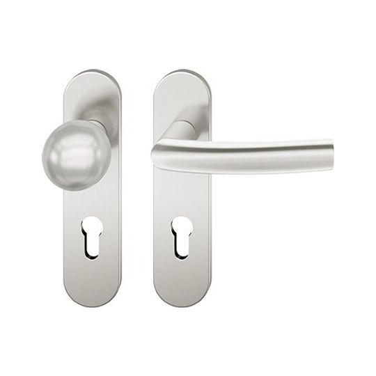 FSB Wechselgarnitur 12 1107; Material: Aluminium; Befestigungsart: verdeckt verschraubt; Befestigungstechnik: mit Stütznocken; Vierkant: 8 mm; Befestigungssystem: Stiftverbindung; Abdeckung: Kurzschild; Lagerung: ASL®,festdrehbar; Form: oval; Benutzerklasse: Klasse 4; Einsatzbereich: Objekttür; Basis: Wechselgarnitur; Lochung: Profilzylinder gelocht; Entfernung: 72 mm; Türstärke min.: 39 mm; Türstärke max.: 58 mm; DIN-Richtung: DIN Links-Rechts; Anschlagrichtung: Drücker rechts/links verwendbar; Breite: 45 mm; Länge: 185 mm; Oberfläche: eloxiert; Farbton: naturfarbig; Norm: DIN EN 1906; Türart: Außentüren; Drückerbefestigung: Wechselstift mit Rolle; Knopfdurchmesser: 50 mm; Knopfhöhe: 70 mm; Türwerkstoff: Holz,Stahl; Lieferung: mit Befestigungsmaterial; Betätigungswinkel max.: 45 °; Drückerhöhe: 58 mm; Drückerlänge: 136 mm; Design: Hartmut Weise; Ausführung: mit Knopf 0802; Knopfform: Kugelform; Schildstärke außen: 7 mm; Schildstärke innen: 7 mm; Material Unterkonstruktion: Kunststoff-Edelstahl verstärkt; Drückerform: Gehrung,gebogen