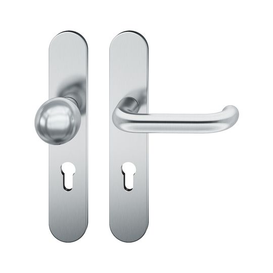 FSB Wechselgarnitur 12 1146; Material: Edelstahl; Befestigungsart: verdeckt verschraubt; Befestigungstechnik: mit Stütznocken; Vierkant: 8 mm; Befestigungssystem: Stiftverbindung; Abdeckung: Langschild; Lagerung: ASL®,festdrehbar; Form: oval; Benutzerklasse: Klasse 4; Einsatzbereich: Objekttür; Basis: Wechselgarnitur; Lochung: Profilzylinder gelocht; Entfernung: 92 mm; Türstärke min.: 39 mm; Türstärke max.: 58 mm; Knopfhöhe: 66 mm; Knopfform: Kugelform; DIN-Richtung: DIN Links-Rechts; Norm: DIN EN 1906; Drückerdurchmesser: 20 mm; Breite: 45 mm; Länge: 245 mm; Oberfläche: poliert; Farbton: edelstahl; Türart: Außentüren; Drückerbefestigung: Wechselstift mit Rolle; Anschlagrichtung: Drücker rechts/links verwendbar; Knopfdurchmesser: 50 mm; Türwerkstoff: Holz,Stahl; Lieferung: mit Befestigungsmaterial; Betätigungswinkel max.: 45 °; Drückerhöhe: 70 mm; Drückerlänge: 142 mm; Schildstärke außen: 7 mm; Schildstärke innen: 7 mm; Material Unterkonstruktion: Kunststoff-Edelstahl verstärkt; Drückerform: U-Form