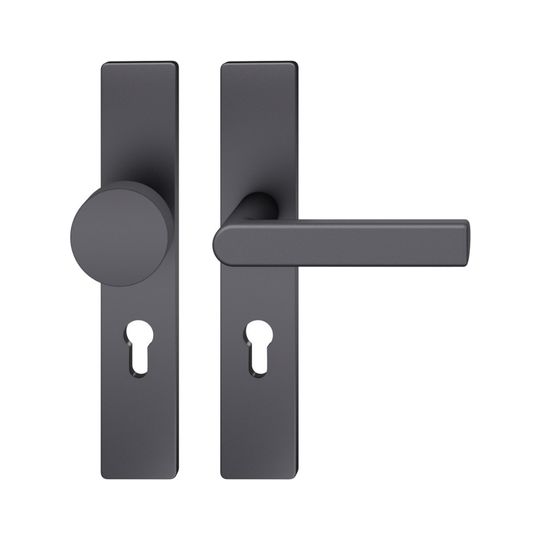 FSB Wechselgarnitur 12 1244; Material: Aluminium; Befestigungsart: verdeckt verschraubt; Befestigungstechnik: mit Stütznocken; Vierkant: 8 mm; Befestigungssystem: Stiftverbindung; Abdeckung: Langschild; Lagerung: ASL®,festdrehbar; Form: eckig; Benutzerklasse: Klasse 4; Einsatzbereich: Objekttür; Basis: Wechselgarnitur; Lochung: Profilzylinder gelocht; Entfernung: 72 mm; Türstärke min.: 39 mm; Türstärke max.: 58 mm; Knopfhöhe: 44 mm; Knopfform: rund; DIN-Richtung: DIN Links-Rechts; Norm: DIN EN 1906; Breite: 45 mm; Länge: 245 mm; Farbe: schwarz; Oberfläche: gestrahlt,eloxiert; Türart: Außentüren; Drückerbefestigung: Wechselstift mit Rolle; Anschlagrichtung: Drücker rechts/links verwendbar; Knopfdurchmesser: 50 mm; Türwerkstoff: Holz,Stahl; Lieferung: mit Befestigungsmaterial; Betätigungswinkel max.: 45 °; Drückerhöhe: 57,5 mm; Drückerlänge: 140 mm; Design: gmp Architekten von Gerkan, Marg und Partner; Schildstärke außen: 7 mm; Schildstärke innen: 7 mm; Material Unterkonstruktion: Kunststoff-Edelstahl verstärkt; Drückerform: Design,L-Form