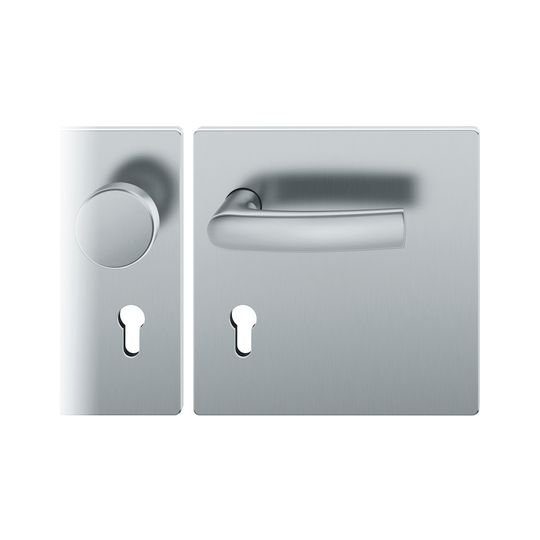 FSB Wechselgarnitur 72 1015; Produkttyp: Wechselgarnitur; Produkttyp (Hersteller): Wechselgarnitur; Ausführung: Breitschild; Befestigungsart: verdeckt verschraubt; Befestigungstechnik: mit Stütznocken; Form: eckig; Vierkant: 8 mm; Material: Aluminium; Form Türgriff (innen): gebogen; Form Türgriff (außen): Flachknopf; Gewinde Knopf/Griffplatte: M12; Durchmesser Türgriff (außen): 50 mm; Länge Türgriff (innen): 122 mm; Höhe Türgriff (außen): 44 mm; Schildbreite außen: 185 mm; Schildbreite innen: 185 mm; Schildlänge außen: 185 mm; Schildlänge innen: 185 mm; Schildstärke außen: 7 mm; Schildstärke innen: 7 mm; Lagerung: Ausgleichslager® 3,festdrehbar; Einsatzbereich: Objekttür; Türart: Vollblatt; Türwerkstoff: Holz; Norm: DIN EN 1906; Lochung: Profilzylinder gelocht; Entfernung: 72 mm; DIN-Richtung: DIN Links; Farbe: silber; Farbton: naturfarben; Oberfläche: eloxiert; Ausführung Vierkant: Rollenwechselstift; Betätigungswinkel max.: 35 °; Türstärke min.: 39 mm; Türstärke max.: 48 mm