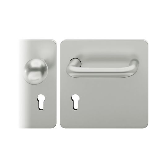 FSB Wechselgarnitur 72 1070; Produkttyp: Wechselgarnitur; Produkttyp (Hersteller): Wechselgarnitur; Ausführung: Breitschild; Befestigungsart: verdeckt verschraubt; Befestigungstechnik: mit Stütznocken; Form: eckig; Vierkant: 8 mm; Material: Aluminium; Form Türgriff (innen): U-Form; Form Türgriff (außen): Kugelknopf; Gewinde Knopf/Griffplatte: M12; Durchmesser Türgriff (innen): 20 mm; Durchmesser Türgriff (außen): 50 mm; Länge Türgriff (innen): 145 mm; Höhe Türgriff (außen): 70 mm; Schildbreite außen: 185 mm; Schildbreite innen: 185 mm; Schildlänge außen: 185 mm; Schildlänge innen: 185 mm; Schildstärke außen: 7 mm; Schildstärke innen: 7 mm; Lagerung: festdrehbar,Ausgleichslager® 3; Einsatzbereich: Objekttür; Türart: Vollblatt; Türwerkstoff: Holz; Norm: DIN EN 1906; Lochung: Profilzylinder gelocht; Entfernung: 72 mm; DIN-Richtung: DIN Links; Farbe: silber; Farbton: naturfarben; Oberfläche: eloxiert; Ausführung Vierkant: Rollenwechselstift; Betätigungswinkel max.: 35 °; Türstärke min.: 39 mm; Türstärke max.: 48 mm
