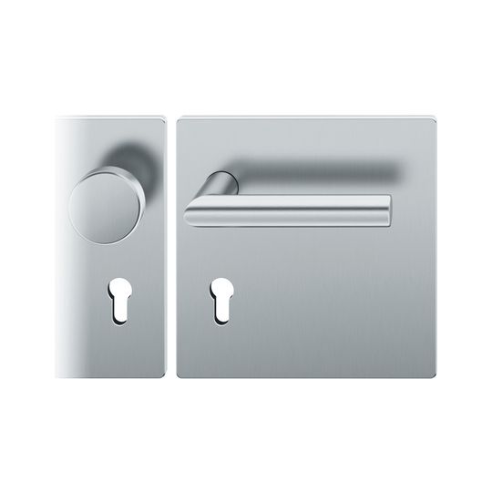 FSB Wechselgarnitur 72 1076; Produkttyp: Wechselgarnitur; Produkttyp (Hersteller): Wechselgarnitur; Ausführung: Breitschild; Befestigungsart: verdeckt verschraubt; Befestigungstechnik: mit Stütznocken; Form: eckig; Vierkant: 8 mm; Material: Edelstahl; Form Türgriff (innen): L-Form; Form Türgriff (außen): Flachknopf; Gewinde Knopf/Griffplatte: M12; Durchmesser Türgriff (innen): 21 mm; Durchmesser Türgriff (außen): 55 mm; Länge Türgriff (innen): 137 mm; Höhe Türgriff (außen): 44 mm; Schildbreite außen: 185 mm; Schildbreite innen: 185 mm; Schildlänge außen: 185 mm; Schildlänge innen: 185 mm; Schildstärke außen: 7 mm; Schildstärke innen: 7 mm; Lagerung: festdrehbar,Ausgleichslager® 3; Einsatzbereich: Objekttür; Türart: Vollblatt; Türwerkstoff: Holz; Norm: DIN EN 1906; Lochung: Profilzylinder gelocht; Entfernung: 72 mm; DIN-Richtung: DIN Links; Farbe: grau; Farbton: edelstahl; Oberfläche: fein matt; Ausführung Vierkant: Rollenwechselstift; Betätigungswinkel max.: 35 °; Türstärke min.: 39 mm; Türstärke max.: 48 mm