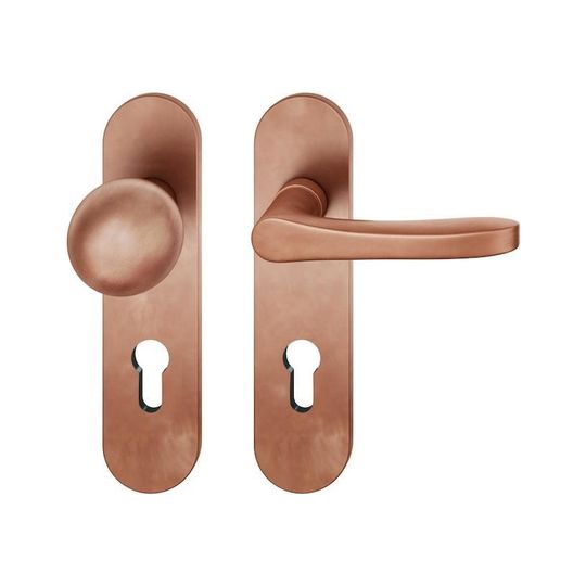 FSB Wechselgarnitur 72 1106; Material: Bronze; Befestigungsart: verdeckt verschraubt; Befestigungstechnik: mit Stütznocken; Vierkant: 8 mm; Befestigungssystem: Stiftverbindung; Abdeckung: Kurzschild; Lagerung: festdrehbar,Ausgleichslager® 3; Form: oval; Benutzerklasse: Klasse 4; Einsatzbereich: Objekttür; Basis: Wechselgarnitur; Lochung: Profilzylinder gelocht; Entfernung: 72 mm; Türstärke min.: 39 mm; Türstärke max.: 48 mm; DIN-Richtung: DIN Rechts; Anschlagrichtung: Drücker rechts zeigend; Breite: 45 mm; Länge: 185 mm; Oberfläche: patiniert gewachst; Farbton: hellbronze; Norm: DIN EN 1906; Türart: Außentüren; Drückerbefestigung: Stabil-Wechselstift mit Rolle; Knopfdurchmesser: 50 mm; Knopfhöhe: 65 mm; Türwerkstoff: Holz,Stahl; Lieferung: mit Befestigungsmaterial; Betätigungswinkel max.: 35 °; Drückerhöhe: 60 mm; Drückerlänge: 119 mm; Design: Christoph Mäckler; Knopfform: Kugelform; Schildstärke außen: 7 mm; Schildstärke innen: 7 mm; Drückerform: L-Form