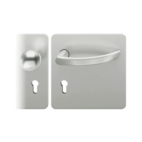 FSB Wechselgarnitur 72 1119; Produkttyp: Wechselgarnitur; Produkttyp (Hersteller): Wechselgarnitur; Ausführung: Breitschild; Befestigungsart: verdeckt verschraubt; Befestigungstechnik: mit Stütznocken; Form: eckig; Vierkant: 8 mm; Material: Aluminium; Form Türgriff (innen): gebogen; Form Türgriff (außen): Kugelknopf; Gewinde Knopf/Griffplatte: M12; Durchmesser Türgriff (außen): 50 mm; Länge Türgriff (innen): 149 mm; Höhe Türgriff (außen): 70 mm; Schildbreite außen: 185 mm; Schildbreite innen: 185 mm; Schildlänge außen: 185 mm; Schildlänge innen: 185 mm; Schildstärke außen: 7 mm; Schildstärke innen: 7 mm; Lagerung: Ausgleichslager® 3,festdrehbar; Einsatzbereich: Objekttür; Türart: Vollblatt; Türwerkstoff: Holz; Norm: DIN EN 1906; Lochung: Profilzylinder gelocht; Entfernung: 72 mm; DIN-Richtung: DIN Rechts; Farbe: silber; Farbton: naturfarben; Oberfläche: eloxiert; Design Türdrücker: Hartmut Weise; Ausführung Vierkant: Rollenwechselstift; Betätigungswinkel max.: 35 °; Türstärke min.: 39 mm; Türstärke max.: 48 mm