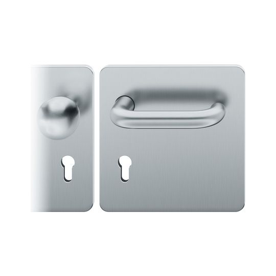 FSB Wechselgarnitur 72 1146; Produkttyp: Wechselgarnitur; Produkttyp (Hersteller): Wechselgarnitur; Ausführung: Breitschild; Befestigungsart: verdeckt verschraubt; Befestigungstechnik: mit Stütznocken; Form: eckig; Vierkant: 8 mm; Material: Edelstahl; Form Türgriff (innen): U-Form; Form Türgriff (außen): Kugelknopf; Gewinde Knopf/Griffplatte: M12; Durchmesser Türgriff (innen): 20 mm; Durchmesser Türgriff (außen): 50 mm; Länge Türgriff (innen): 142 mm; Höhe Türgriff (außen): 66 mm; Schildbreite außen: 185 mm; Schildbreite innen: 185 mm; Schildlänge außen: 185 mm; Schildlänge innen: 185 mm; Schildstärke außen: 7 mm; Schildstärke innen: 7 mm; Lagerung: festdrehbar,Ausgleichslager® 3; Einsatzbereich: Objekttür; Türart: Vollblatt; Türwerkstoff: Holz; Norm: DIN EN 1906; Lochung: Profilzylinder gelocht; Entfernung: 72 mm; DIN-Richtung: DIN Links; Farbe: grau; Farbton: edelstahl; Oberfläche: fein matt; Ausführung Vierkant: Rollenwechselstift; Betätigungswinkel max.: 35 °; Türstärke min.: 39 mm; Türstärke max.: 48 mm