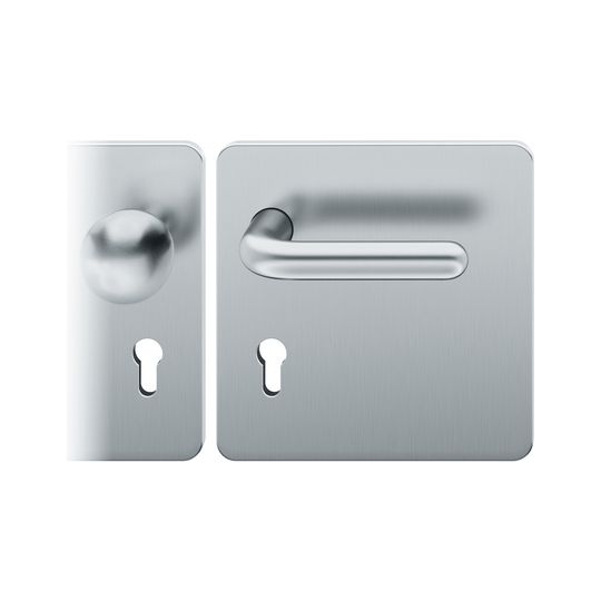 FSB Wechselgarnitur 72 1147; Produkttyp: Wechselgarnitur; Produkttyp (Hersteller): Wechselgarnitur; Ausführung: Breitschild; Befestigungsart: verdeckt verschraubt; Befestigungstechnik: mit Stütznocken; Form: eckig; Vierkant: 8 mm; Material: Edelstahl; Form Türgriff (innen): gebogen; Form Türgriff (außen): Kugelknopf; Gewinde Knopf/Griffplatte: M12; Durchmesser Türgriff (innen): 20 mm; Durchmesser Türgriff (außen): 50 mm; Länge Türgriff (innen): 132 mm; Höhe Türgriff (außen): 66 mm; Schildbreite außen: 185 mm; Schildbreite innen: 185 mm; Schildlänge außen: 185 mm; Schildlänge innen: 185 mm; Schildstärke außen: 7 mm; Schildstärke innen: 7 mm; Lagerung: Ausgleichslager® 3,festdrehbar; Einsatzbereich: Objekttür; Türart: Vollblatt; Türwerkstoff: Holz; Norm: DIN EN 1906; Lochung: Profilzylinder gelocht; Entfernung: 72 mm; DIN-Richtung: DIN Links; Farbe: grau; Farbton: edelstahl; Oberfläche: fein matt; Ausführung Vierkant: Rollenwechselstift; Betätigungswinkel max.: 35 °; Türstärke min.: 39 mm; Türstärke max.: 48 mm