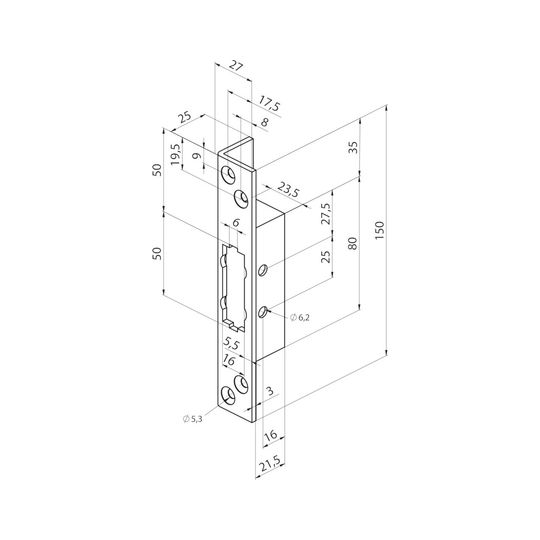 effeff Winkelschließblech Z29-SBL; Produkttyp: Winkelschließblech; Produkttyp (Hersteller): Winkelschließblech; Ausfräsung: mit Riegelausschnitt; Material: Stahl; Einsatzbereich: Türrahmen; Form: kantig; DIN-Richtung: DIN Links-Rechts; Oberfläche: matt gebürstet; Schließblechbreite: 27 mm; Schließblechlänge: 150 mm; Schließblechtiefe: 25 mm; Materialstärke: 3 mm