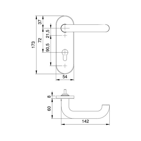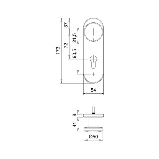 nach DIN 18273, festdrehbar gelagert, mit durchgehendem Stahlkern, verdeckte Verschraubung