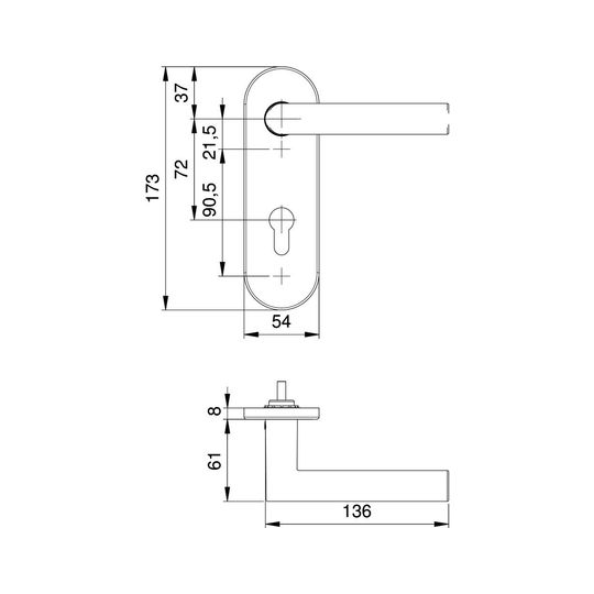 mit Kurzschild, PZ-Lochung, DIN EN 1906 Klasse 4, Grundkonstruktion: Stahl, Lagerung: fest-drehbar, Stütznocken: Stahl Ø 8 mm, Verschraubung: M5, verdeckt