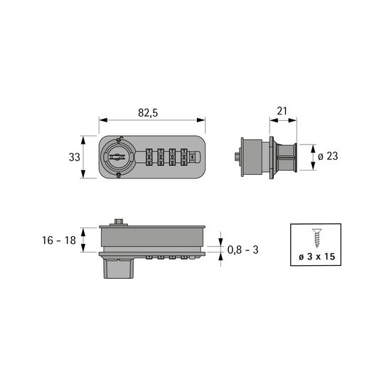 Zahlenschloss mit Riegel, links, Chrom Optik