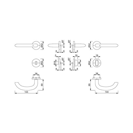 HOPPE Drückergarnitur Marseille E1138Z/42KV/42KVS; Produkttyp: Drückergarnitur; Produkttyp (Hersteller): Drückergarnitur; Ausführung: Rosette; Befestigungsart Drückerrosette (außen): verdeckt verschraubt; Befestigungsart Drückerrosette (innen): verdeckt verschraubt; Befestigungsart Schlüsselrosette (außen): verdeckt verschraubt; Befestigungsart Schlüsselrosette (innen): verdeckt verschraubt; Befestigungstechnik: mit Stütznocken; Form Drückerrosette: rund; Form Schlüsselrosette (außen): rund; Form Schlüsselrosette (innen): rund; Vierkant: 8 mm; Material: Edelstahl; Form Türgriff (innen): gebogen; Form Türgriff (außen): gebogen; Durchmesser Schlüsselrosette: 52 mm; Länge Türgriff (innen): 144; Länge Türgriff (außen): 144; Höhe Türgriff (innen): 69; Höhe Türgriff (außen): 69; Durchmesser Drückerrosette (außen): 52 mm; Durchmesser Drückerrosette (innen): 52 mm; Höhe Drückerrosette (außen): 8 mm; Höhe Drückerrosette (innen): 8 mm; Höhe Schlüsselrosette (außen): 8 mm; Höhe Schlüsselrosette (innen): 8 mm; Lagerung: wartungsfreies Gleitlager,mit Rückholfeder; Einsatzbereich: Zimmertür; Türart: Vollblatt; Türwerkstoff: Holz,Stahl; Lochung: WC Schlitzkopf; Riegel-Vierkant: 8 mm; DIN-Richtung: DIN Links-Rechts; Farbe: grau; Farbton: edelstahl matt; Ausführung Vierkant: Vierkantstift; Türstärke min.: 37 mm; Türstärke max.: 42 mm; Norm: DIN EN 1906