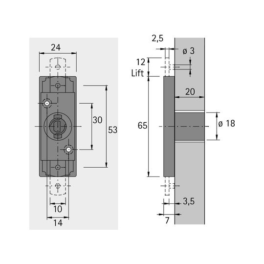 Set Zylinderschubstangenschloss Z23, ø 18 mm, links